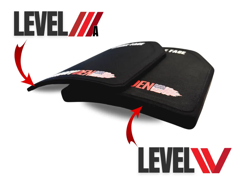 Options between Level IIIA and Level IV body Armor. Options between Hard-Curved Plates and Soft Panel Armor.